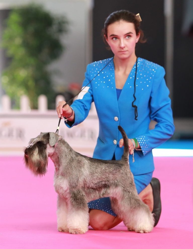 Faruk, orgullo de Anthares New Blood, criado y preparado por Alberto, y en esta foto luciendo su stripping en las manos de Ainhoa, representa el equilibrio entre belleza, temperamento y trabajo bien hecho.